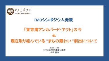 2024年のTMOアドバンス講座修了発表では、市民の三番瀬への興味・関心を呼び起こし、海に関する様々な課題に取り組む人を増やすための「東京湾アンカバード・アクト」という活動の構想を発表しました。