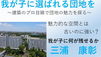 なんとなく過去のもの、古いものと言われがちな建物である団地。高齢化、老朽化等諸問題ばかりが目立っていますが、魅力的な部分があることを見逃してはいませんか?市川市の湾岸部、自身の住むハイタウン塩浜を、息子たちが将来の住居として選んでほしいという思いから、日々建築、建物管理の職に従事している知見を基に、団地の隠れた魅力を探しました。