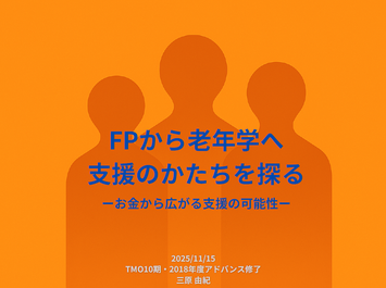 そこで大学院で老年学を学び、夫婦関係満足度の研究に挑戦中。お金・心理・関係性を結ぶ新しい支援の形を探求しています。